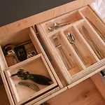 An equipped kitchen with a refrigerator and a stovetop is available at the holiday home.